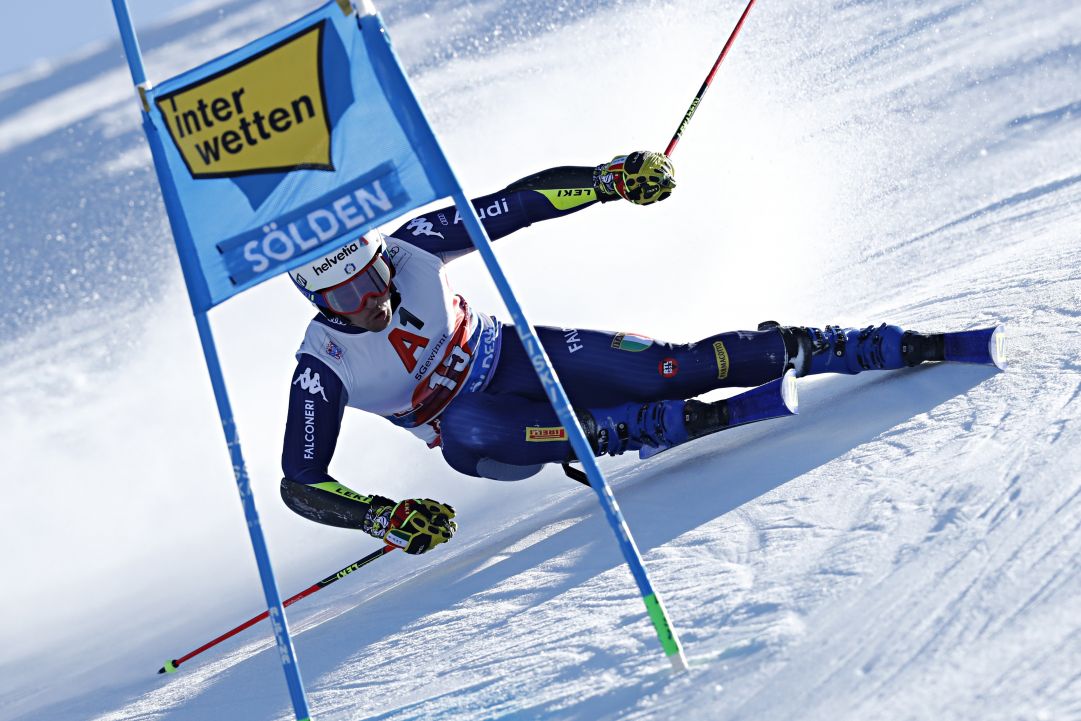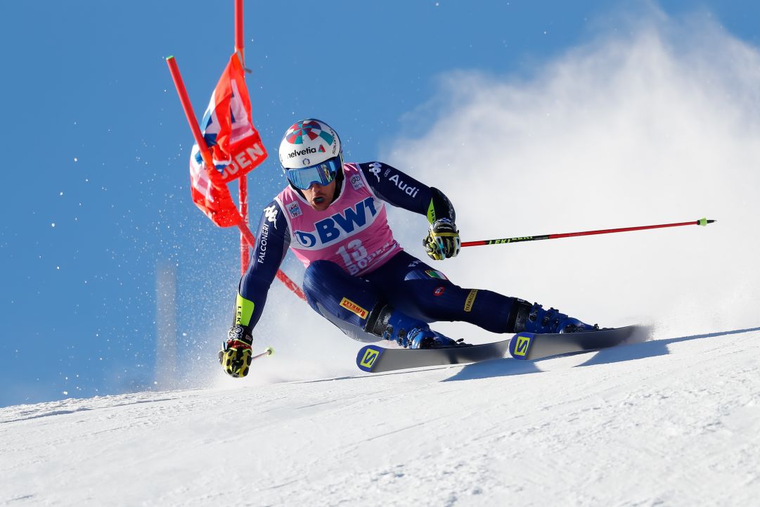 Gran prova dell'azzurro luca de aliprandini che è 2/o in 1.17.95 dopo la prima manche dello slalom gigante iridato di cortina 2021.