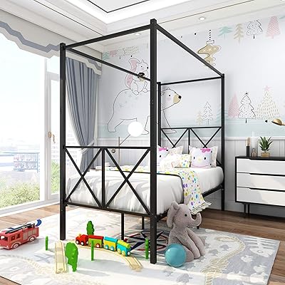 The black twin size canopy bed frame uses a solid metal structure and a solid metal slat support, which provides the best support for your mattress. Baxton studio twin upholstered platform bed this beautiful twin upholstered platform bed is a great piece of furniture for the living room or bedroom. Shop for twin bed canopy at bed bath & beyond. Coaster parker twin slat bed with underbed storage drawer. Kids bedroom in bohemian style.